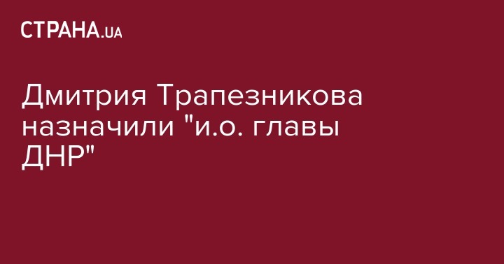 Исполняющим обязанности главы "ДНР" согласно "Конституции ДНР" после смерти Александра Захарченко стал "заместитель Председателя Совета Министров ДНР" Дмитрий Трапезников. Об этом было объявлено сегодня на экстренном брифинге, передает "ДАН".