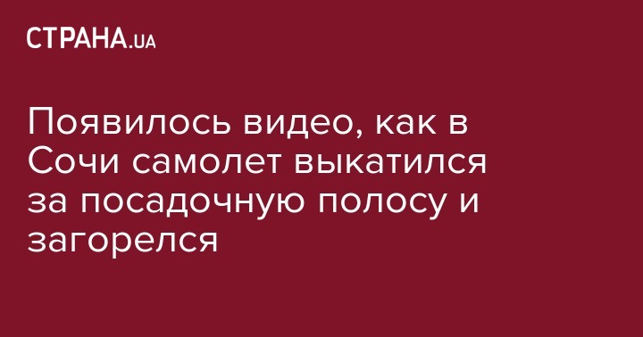 Появилось видео, как в Сочи самолет выкатился за посадочную полосу и загорелся