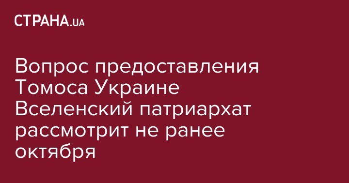 Вопрос предоставления Томоса Украине Вселенский патриархат рассмотрит не ранее октября