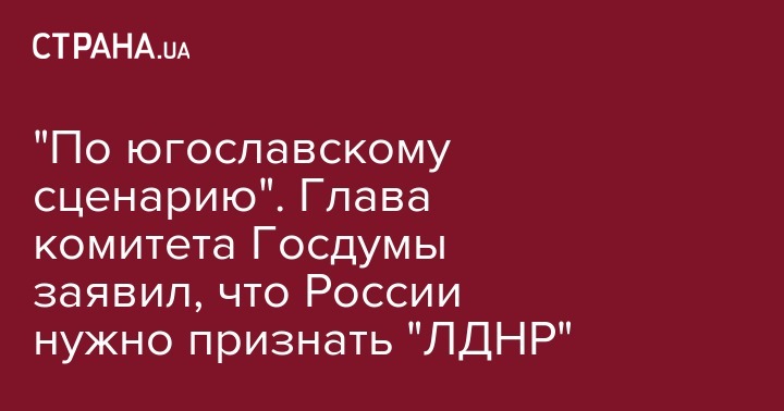 "По югославскому сценарию". Глава комитета Госдумы заявил, что России нужно признать "ЛДНР"