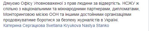 По его словам, НСЖУ вместе с национальными и международными партнерами, дипломатами, Мониторинговой миссией ООН и другими организациями будет продолжать бороться за безопасность журналистов в Украине.