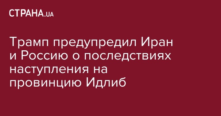 Президент США Дональд Трамп предупредил Иран и Россию о последствиях, если эти страны все-таки решат поддержать наступление правительственных сирийских войск на провинцию Идлиб.