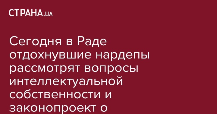Сегодня в Раде отдохнувшие нардепы рассмотрят вопросы интеллектуальной собственности и законопроект о деятельности ГБР