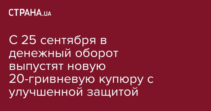С 25 сентября в денежный оборот выпустят новую 20-гривневую купюру с улучшенной защитой