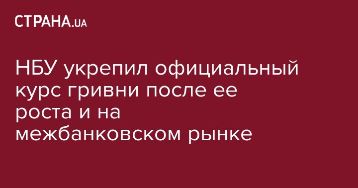 НБУ укрепил официальный курс гривни после ее роста и на межбанковском рынке