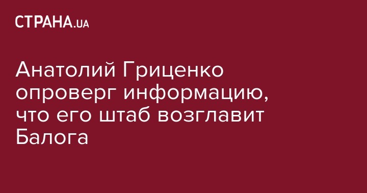 Анатолий Гриценко опроверг информацию, что его штаб возглавит Балога