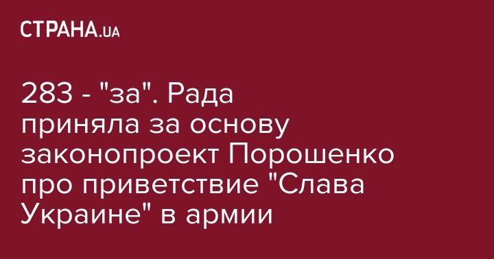 Сегодня, 6 сентября, Верховная Рада Украины проголосовала за принятие за основу президентского законопроекта №9036, которым предлагается ввести в армии приветствие "Слава Украине - героям слава".