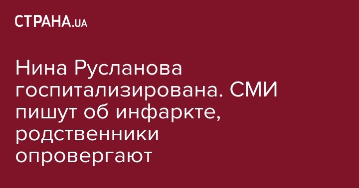 Народная артистка РФ, актриса Нина Русланова госпитализирована в больницу. По данным телеграмм-канала Mash - у нее инфаркт. В то же время дочь актрисы сообщила ТАСС, что Русланова на плановом осмотре в больнице.
