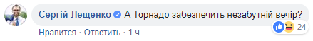 "А "Торнадо" обеспечит незабываемый вечер?" - поинтересовался нардеп от БПП Сергей Лещенко.