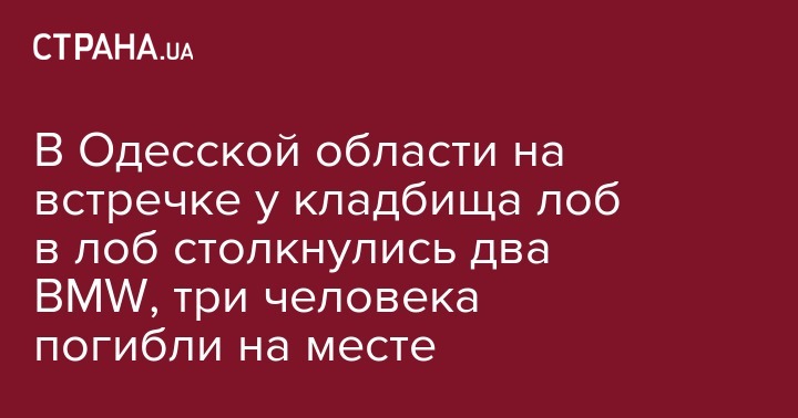 В Одесской области на встречке у кладбища лоб в лоб столкнулись два BMW, три человека погибли на месте