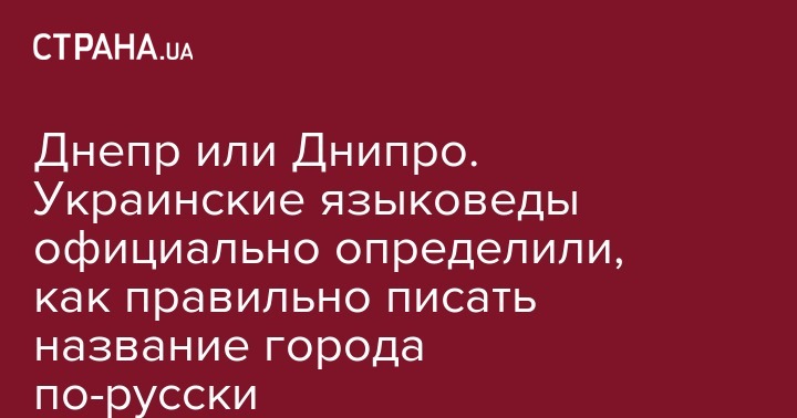 Название переименованного из Днепропетровска в Днепр по-русски следует писать и читать как "Днепр". Об этом сказано в письме-ответе Института украинского языка, подписанного директором института Павлом Гриценко на запрос чиновников горсовета Днепра. Документ разместила у себя на Facebook главред КП в Украине Оксана Богданова.