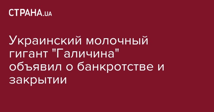 Украинский молочный гигант "Галичина" объявил о банкротстве и закрытии