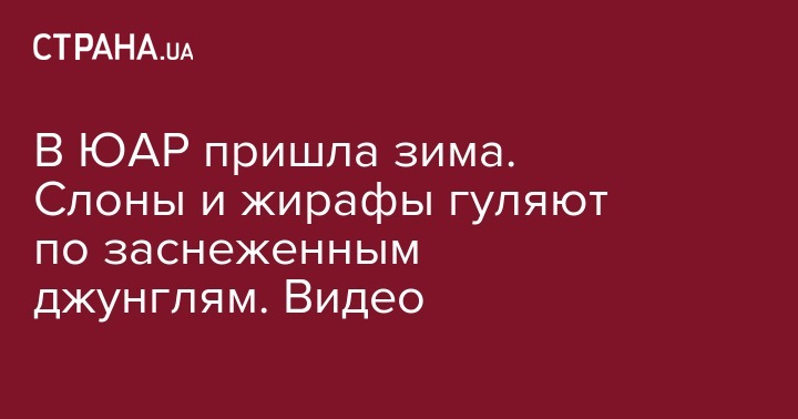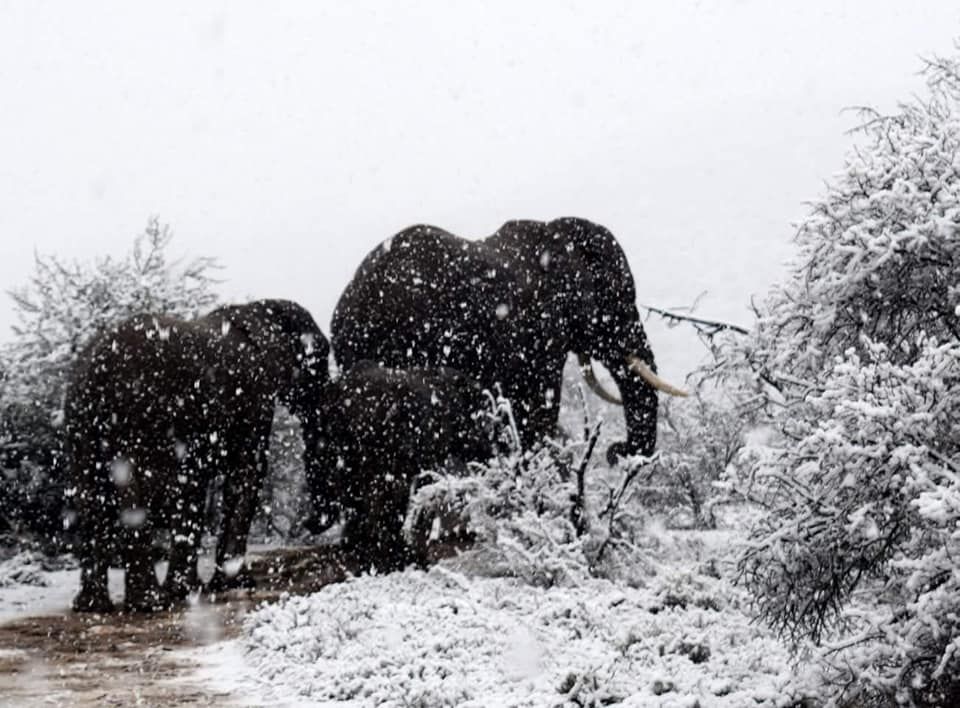 В ЮАР пришла зима. Слоны и жирафы гуляют по заснеженным джунглям. Видео