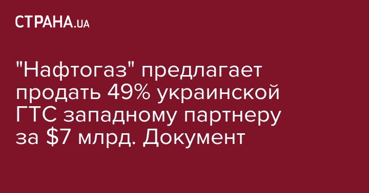 Национальная акционерная компания "Нафтогаз Украины" считает целесообразной продажу 49% акций оператора украинской газотранспортной системы международному партнеру Украины.