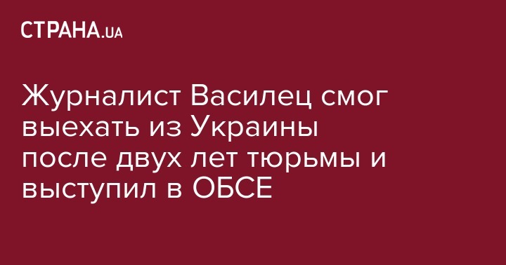 Бывший заключенный украинский журналист Дмитрий Василец выступил на совещании ОБСЕ по свободе слова в Варшаве. Он смог выехать туда по истечении меры пресечения - домашнего ареста.