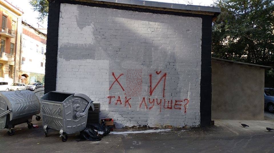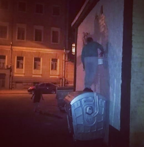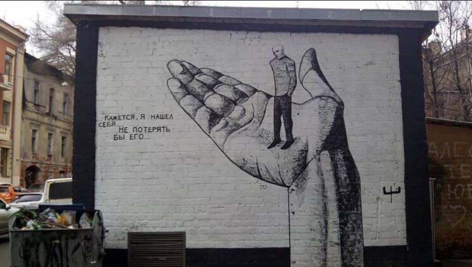 5 сентября в центре Харькова уничтожили граффити, нарисованное художником Гамлетом Зиньковским. Это украинский художник, который был одним из представителей Украины на 53-м Венецианском биеннале. На рисунке была изображена ладонь, на которой стоит человек и подпись " Кажется, я нашел себя. Не потерять бы его". Граффити красовалось на стене с 2016 года.