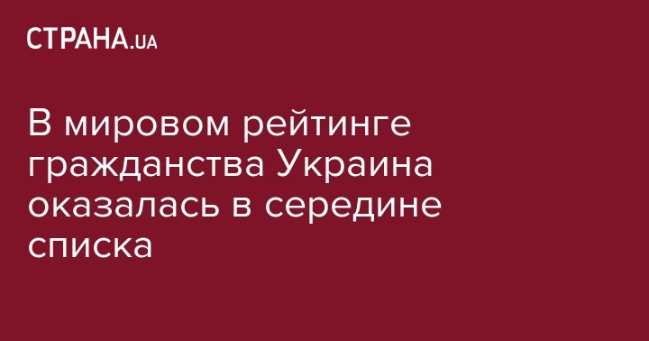 Украина в рейтинге привлекательности гражданства (Quality of Nationality Index) заняла 87-е место. Рейтинг был обнародован 2 июня швейцарской компанией Henley & Partners, специализирующейся на помощи в получении гражданства и виз.