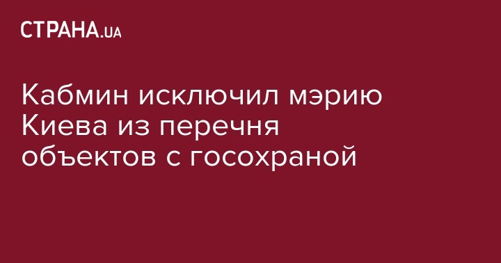 Кабмин исключил мэрию Киева из перечня объектов с госохраной