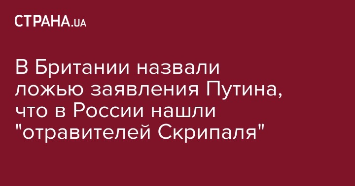 Представитель британского премьер-министра Терезы Мэй прокомментировал сегодняшнее заявление президента России Владимира Путина о том, что в России нашли людей, которых Британия обвиняет в отравлении Скрипалей. Об этом сообщает Reuters.