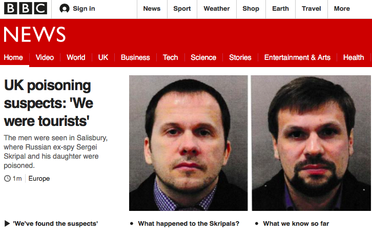 Заголовок ВВС: Подозреваемые в деле Скрипаля: "Мы были всего лишь туристами в Солсбери"