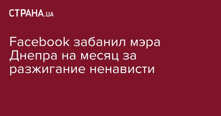 Соцсеть Facebook заблокировала личный аккаунт мэра Днепра Бориса Филатова из-за "разжигания ненависти". Поводом послужил комментарий месячной давности. Страница Филатова будет в бане 30 дней. Об этом сообщается на второй странице Бориса Филатова в Facebook.