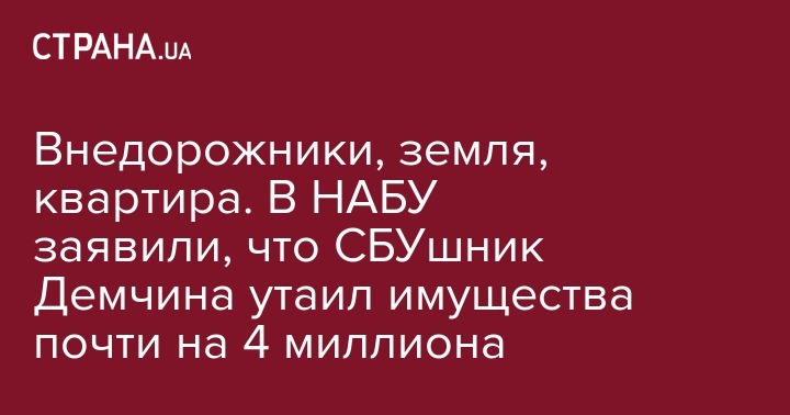 Внедорожники, земля, квартира. В НАБУ заявили, что СБУшник Демчина утаил имущества почти на 4 миллиона
