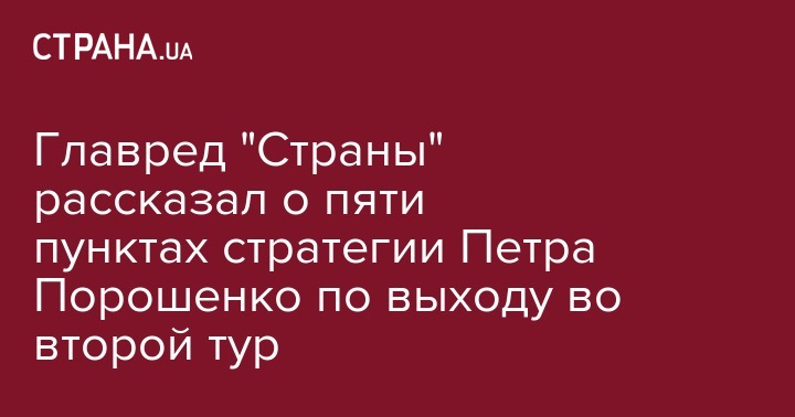 Главред "Страны" рассказал о пяти пунктах стратегии Петра Порошенко по выходу во второй тур