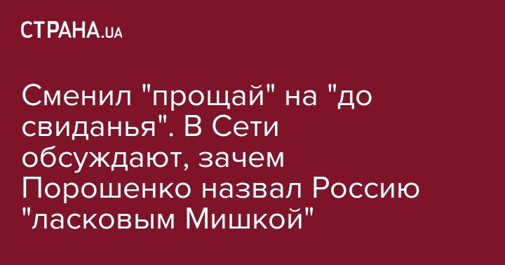 Петр Порошенко изобрел новый мем о расставании Украины с Россией. Вместо "остаточного прощавай" сегодня он использовал фразу "до свиданья, наш ласковый Мишка"