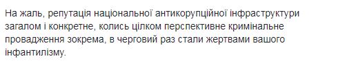 Кроме того, в САП подчеркнули, что не считают это стечением обстоятельств и, учитывая попытку НАБУ провести параллели между этим делом и делом министра инфраструктуры, расценивает это как кулуарную борьбу руководителей НАБУ.
