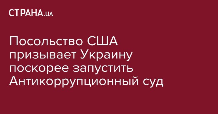 Посольство США призывает Украину поскорее запустить Антикоррупционный суд