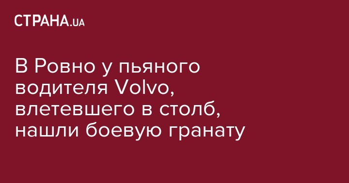 В Ровно пьяный водитель на Volvo въехал в бетонный столб. Приехавшая полиция нашла в салоне его автомобиля гранату РГД-5. Об этом сообщает пресс-служба полиции области.
