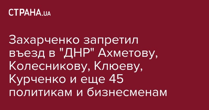Захарченко запретил въезд в "ДНР" Ахметову, Колесникову, Клюеву, Курченко и еще 45 политикам и бизнесменам