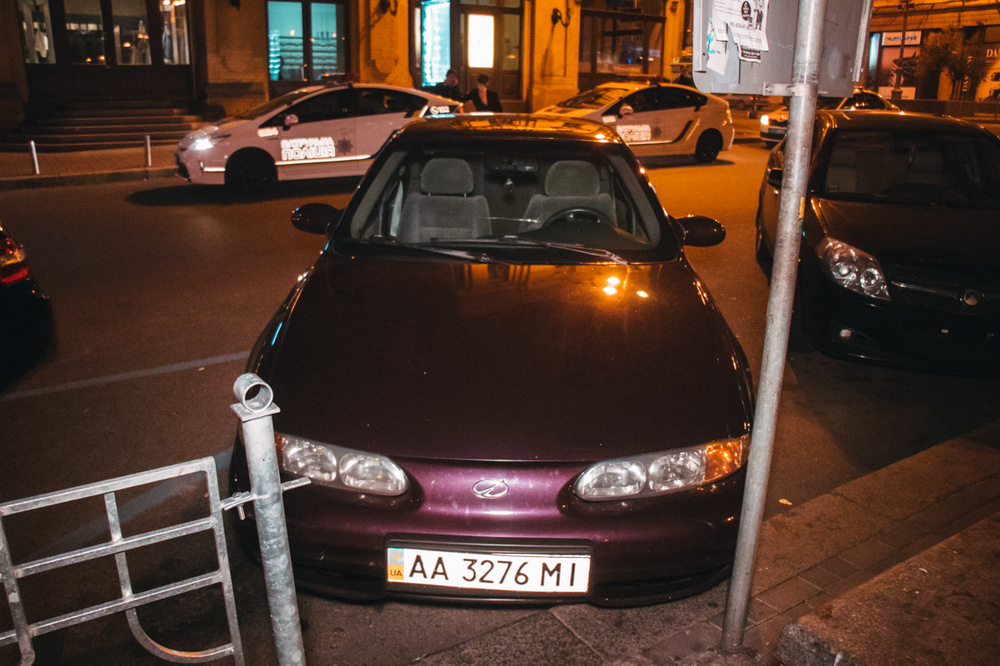ДТП произошло на Бессарабской площади. Очевидцы рассказали, что водитель Chevrolet Alero подъезжал на парковку и врезался в столб дорожного знака. После чего, два человека вышли из машины и отправились в супермаркет Billa.