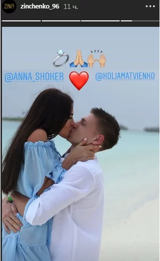 Интересно, что одним из первых будущих молодоженов с важным событием поздравил полузащитник национальной команды и "Манчестер Сити" и близкий друг Николая Матвиенко - Александр Зинченко.