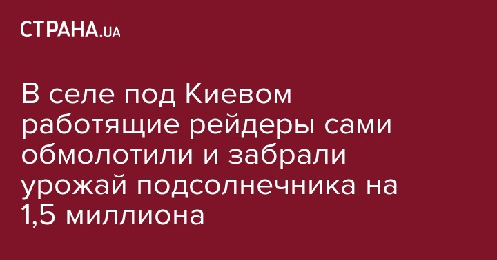 В селе Сидоры под Киевом группа из 40 вооруженных молодых людей спортивного телосложения 15 сентября зашла на поле, обмолотила около 30 га подсолнечника и собрала урожая на 1,5 миллиона гривень. Об этом сообщает пресс-служба Всеукраинского аграрного совета.