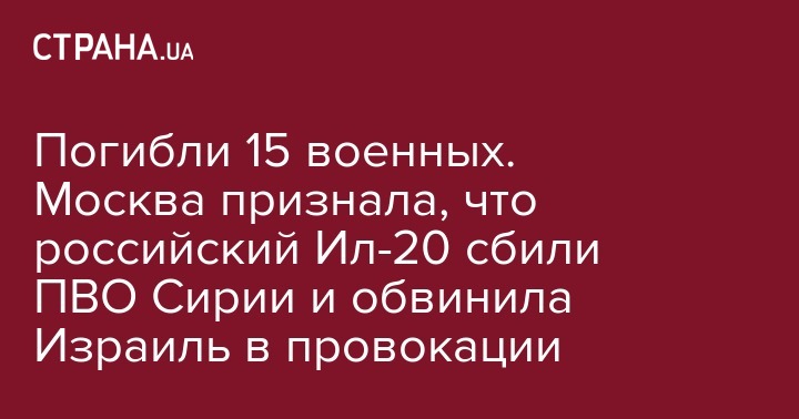 В Минобороны России заявили, что их самолетом прикрывались истребители F-16 Израиля, которые атаковали Латакию. Россия рассматривает действия Израиля как враждебные. Действия израильских военных привели к гибели 15 российских военнослужащих.