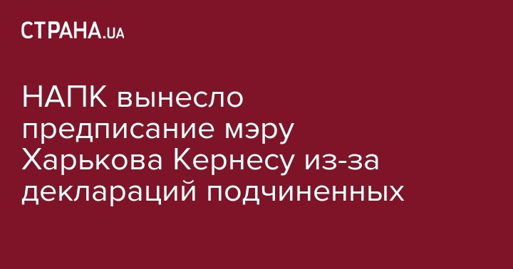 НАПК приняло решение о внесении предписания о нарушении требований законодательства относительно этики поведения, предотвращения и урегулирования конфликта интересов мэру Харькова Геннадию Кернесу. Об этом сообщается на сайте НАПК.