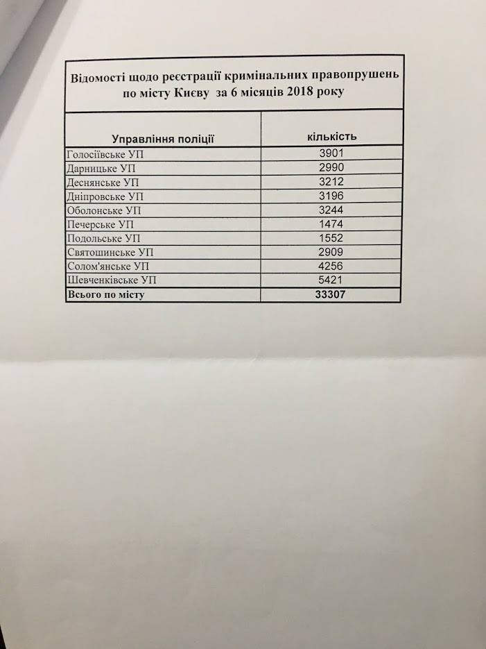 В сообщении говорится, что за первые шесть месяцев этого года в Шевченковском районе было зарегистрировано 5421 уголовное преступление. Следующим "неблагонадежным" районом является Соломенский - в нем 4256 преступлений. Далее по числуу преступлений идут: Голосеевский район - 3901, Оболонский - 3244, Деснянский - 3212, Днепровский - 3196, Святошинский - 2909. Самыми спокойными считаются Подольский и Печерский районы Киева. Здесь в течение первого полугодия 2018 было зарегистрировано 1552 и 1474 преступления соответственно.