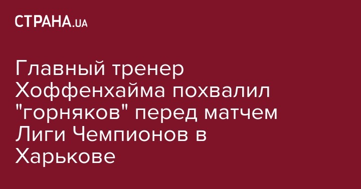 Главный тренер Хоффенхайма похвалил "горняков" перед матчем Лиги Чемпионов в Харькове