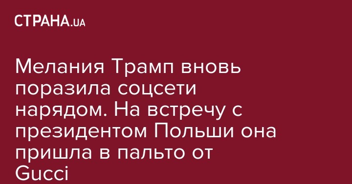 Мелания Трамп вновь поразила соцсети нарядом. На встречу с президентом Польши она пришла в пальто от Gucci