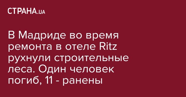 Один человек погиб и 11 получили травмы в результате обвала строительных лесов в отеле Ritz в Мадриде, где проводились ремонтные работы. Об этом сообщает El Pais.
