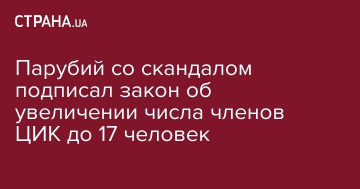 Спикер Верховной Рады Андрей Парубий подписал закон, который увеличивает количественный состав Центральной избирательной комиссии с 15 до 17 членов. Об этом передает "Интерфакс-Украина".