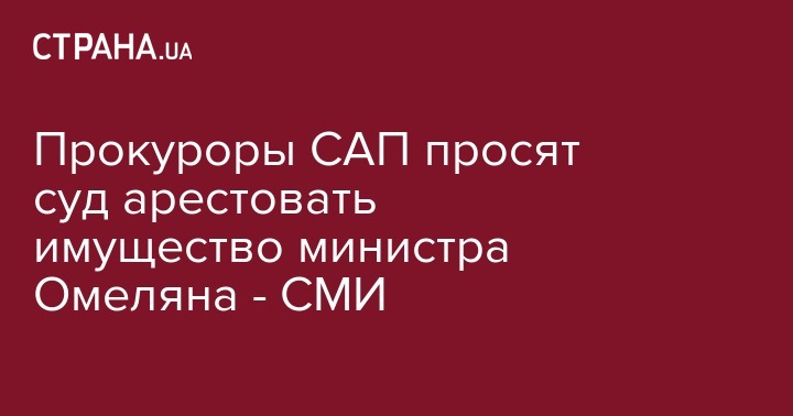 Специализированная антикоррупционная прокуратура (САП) направила в суд просьбу арестовать имущество министра инфраструктуры Владимира Омеляна, которого подозревают в незаконном обогащении. Об этом "Украинской правде" сообщил источник в САП. "Направили в суд соответствующие ходатайства", - сказал собеседник.