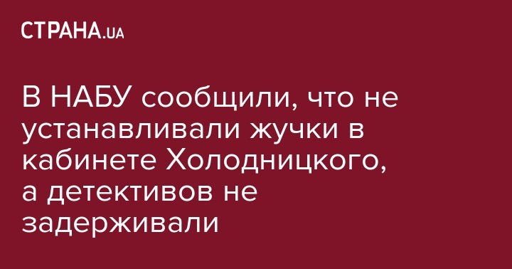 Представители Национального антикоррупционного бюро опровергли свою причастность к установке прослушивающих устройств в кабинете руководителя Специализированной антикоррупционной прокуратуры Назара Холодницкого, и их никто за это не задерживал. Об этом сообщает пресс-служба ведомства в Twitter.