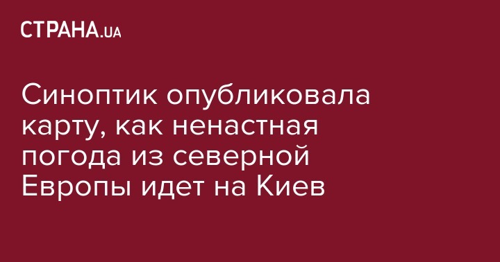 Синоптик опубликовала карту, как ненастная погода из северной Европы идет на Киев