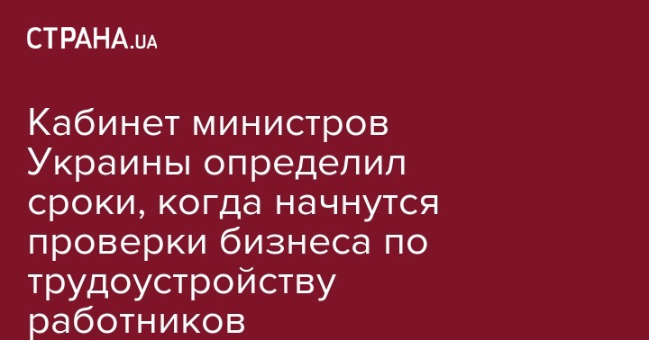 Кабинет министров Украины определил сроки, когда начнутся проверки бизнеса по трудоустройству работников