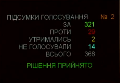 20 сентября депутаты Верховной Рады 321 голосом поддержали отправку в Конституционный суд (КС) президентского законопроекта о внесении изменений в Конституцию в части закрепления стратегического курса Украины на членство в Европейском Союзе и НАТО. Против проголосовало 29 депутатов, воздержались двое.