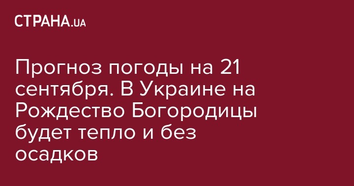 Прогноз погоды на 21 сентября. В Украине на Рождество Богородицы будет тепло и без осадков