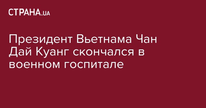 В пятницу, 21 сентября, скончался президент Вьетнама Чан Дай Куанг, ему был 61 год. Он умер сегодня утром, в 06:05 по киевскому времени в ханойском военном госпитале №108. Об этом сообщил начальник центрального управления здравоохранения Нгуен Куок Чиеу, передает ТАСС.