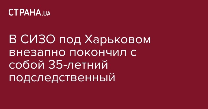 35-летний подследственный, содержащийся под стражей в Богодуховском изоляторе временного содержания (Харьковская область) внезапно свел счеты с жизнью. Сейчас правоохранители устанавливают обстоятельства его гибели. Об этом сообщается на сайте региональной Нацполиции.